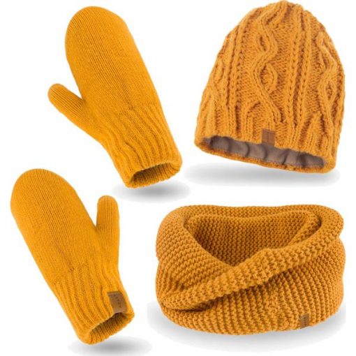 Nandy Nandy Damski Komplet Zimowy Czapka Komin Rękawiczki – Zest-Ckr-18505-Miod
