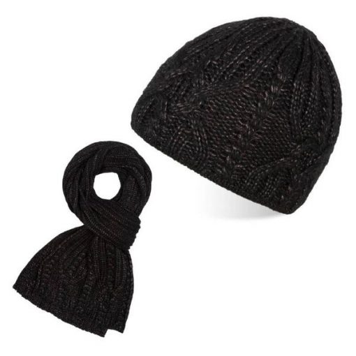 Zestaw zimowy damski PAOLO PERUZZI czapka szal czarny ZZ-02-BL