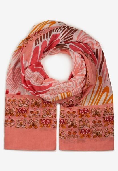 Różowo-Pomarańczowy Szalik w Stylu Apaszki z Bawełny z Motylami Geniosa