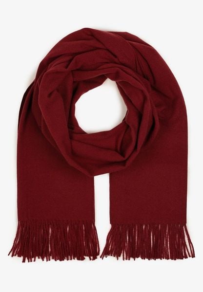 Bordowy Długi Szalik Wiskozowy z Wełną Ozdobiony Frędzlami Portina