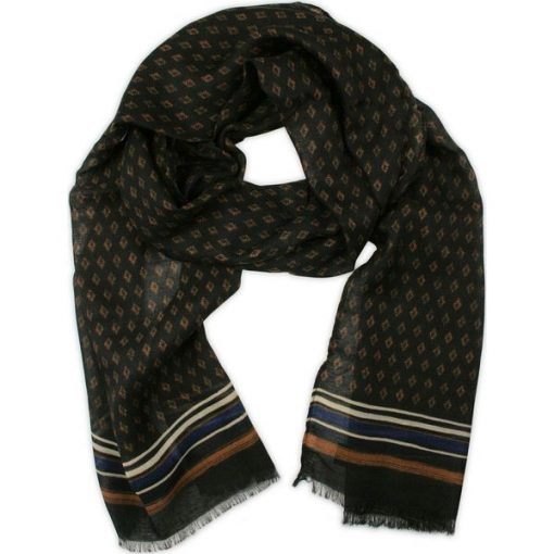 Ciemny Brązowy Elegancki Szalik V.Fraas, Przejściowy, Cienki, w Romby, Wzór Geometryczny