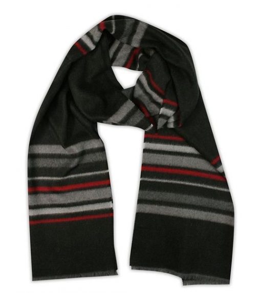Szalik Czarno-Szary Miękki, w Paski, Prążki, Firmy V.Fraas -Cashmink- Elegancki, Męski