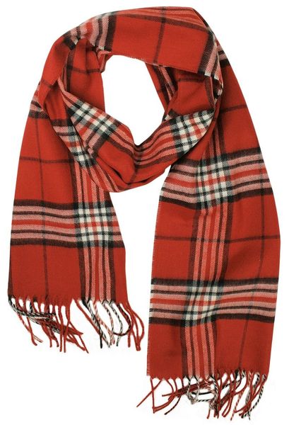 Szalik Pomarańczowy, Marchewkowy z Frędzlami, w Kratkę, Firmy V.Fraas -Cashmink- Jesienno-Zimowy