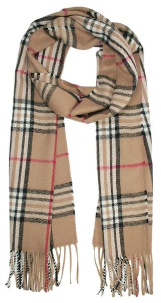 Szalik z Frędzlami, Beżowy Elegancki w Kratkę, Męski, Jesienno-Zimowy z Wełną -V. FRAAS