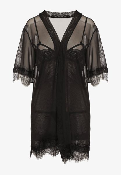Czarny 3-częściowy Komplet Koszula Nocna Stringi i Szlafrok z Siateczki Maddila