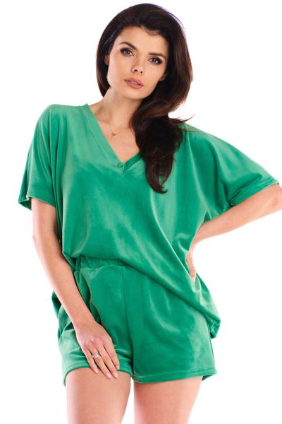 Zielony Welurowy Komplet Dresowy Krótka Bluza i Spodnie z Wstawkami w Cętki Kilima