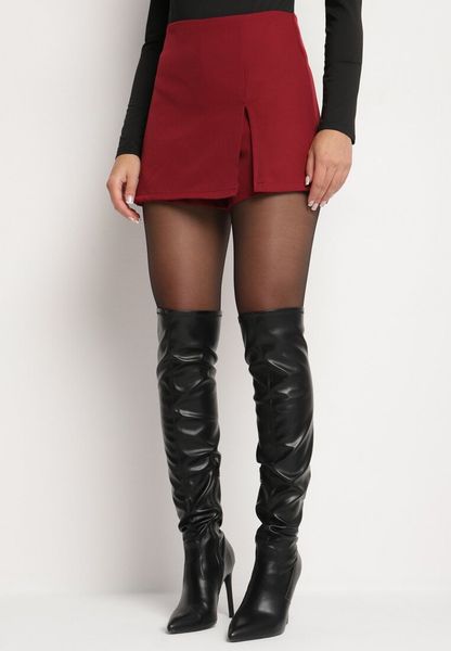 Bordowe Szorty Imitujące Spódnicę z Wysokim Stanem Vikolia