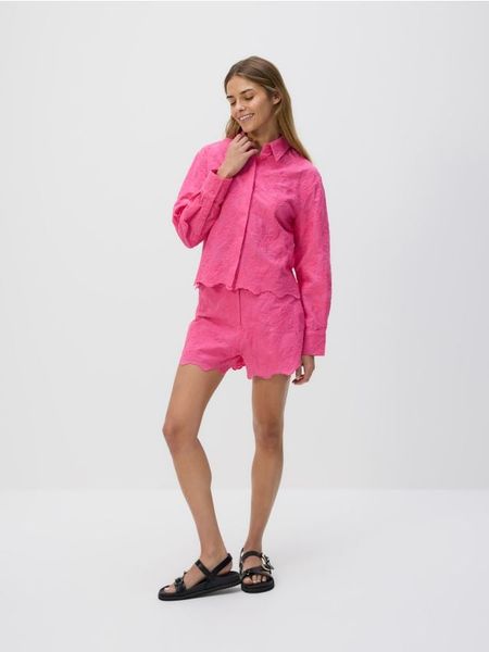 Bawełniane szorty z haftem – fuksja
