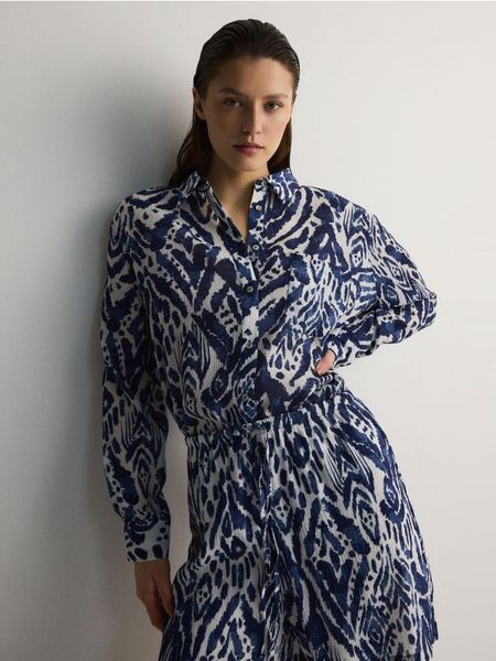 Szorty o swobodny fasonie, wykonane z tkaniny z wiskozą.