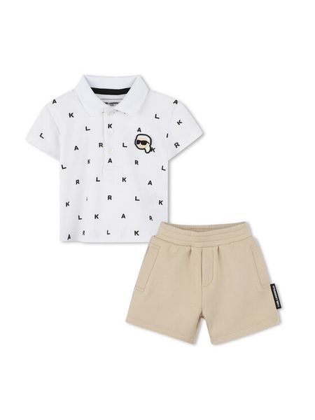 Karl Lagerfeld Kids Komplet polo i spodenki Z30501 S Beżowy Regular Fit