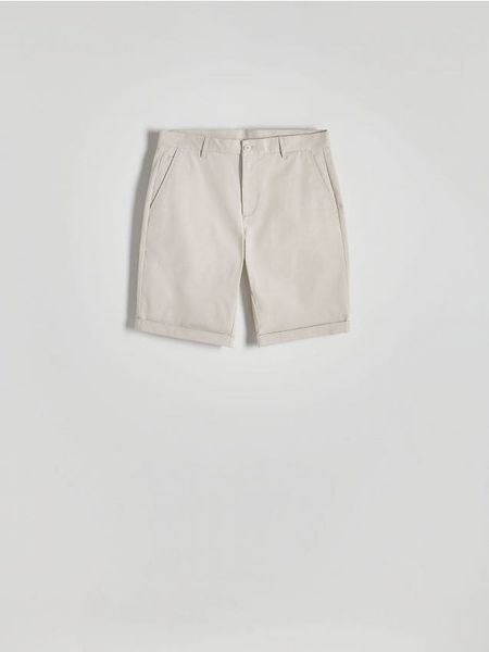 Szorty o dopasowanym kroju, wykonane z bawełnianej tkaniny.