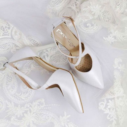 Białe perłowe skórzane czółenka damskie na szpilce Prestige 2281