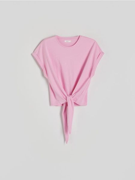T-shirt z wiązaniem – pastelowy róż