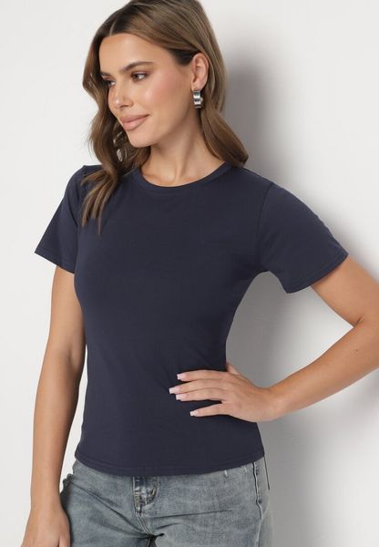 Granatowy Klasyczny T-shirt z Bawełny Lorali