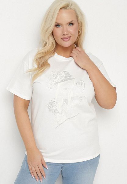 Biały T-shirt z Bawełny z Cyrkoniowym Nadrukiem Sovtebia