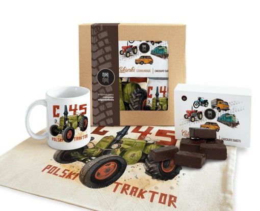Paczka prezentowa dla rolnika Ursus C-45 cukierki czekoladowe 125 gkubek ceramicznytorba bawełniana Paczkę można dodatkowo powiększyć o koszulkę lub bluzę (Kliknij aby zobaczyć wymiary i specyfikacje)Ursus C-45Początki Ursusa sięgają roku 1946, w którym pojawił się pomysł wdrożenia do produkcji polskich ciągników rolniczych. Ursus C-45 zadebiutował w roku 1947 podczas pochodu pierwszomajowego w Warszawie, wówczas pod roboczą nazwą […]