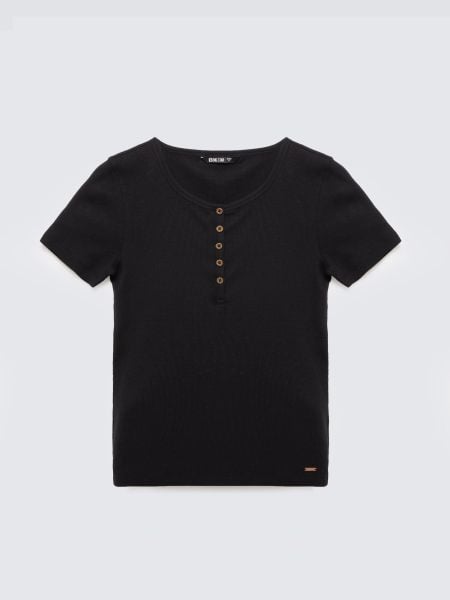 Koszulka damska w prążek z ozdobnymi guzikami czarna Werta 906