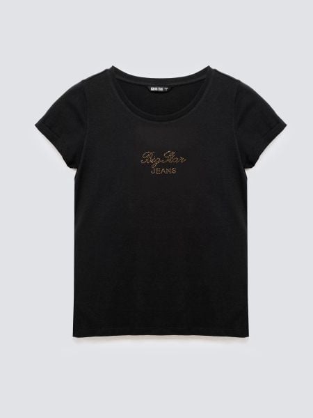Koszulka damska z napisem z cyrkonii czarna Malvina 906
