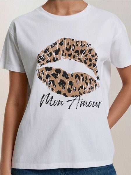 Sinsay – Koszulka z nadrukiem zwierzęcym – biały –