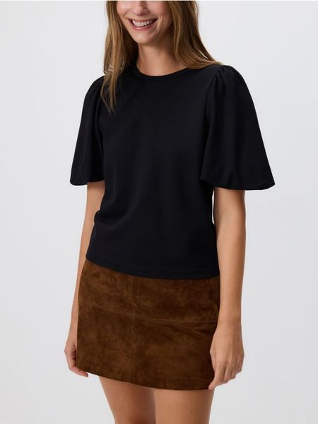 T-shirt o prostym kroju, wykonany z dzianiny z wiskozą.