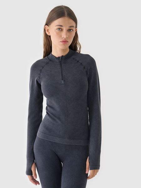4F Longsleeve bezszwowy slim w prążki damski – czarny XS/S