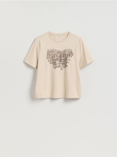 T-shirt o regularnym kroju, wykonany z bawełnianej dzianiny.