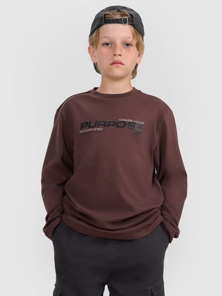 4F Longlseeve regular z nadrukiem chłopięcy – brązowy 140 (9-10 lat)