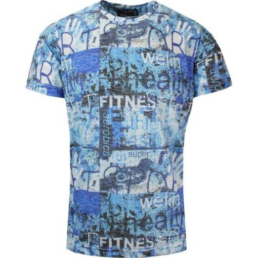 T-Shirt Męski Jasny Niebieski z Kolorowym Nadrukiem, Koszulka, Krótki Rękaw, U-neck