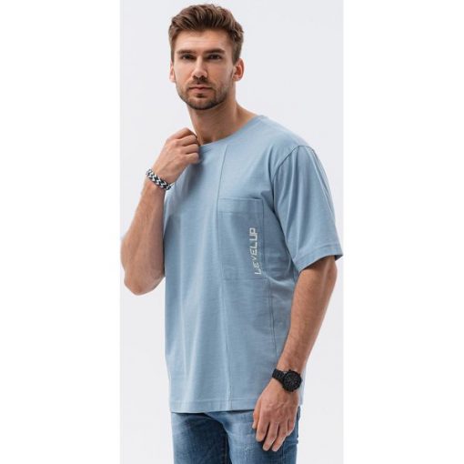 Ombre T-shirt męski bawełniany OVERSIZE – niebieski S1628 L