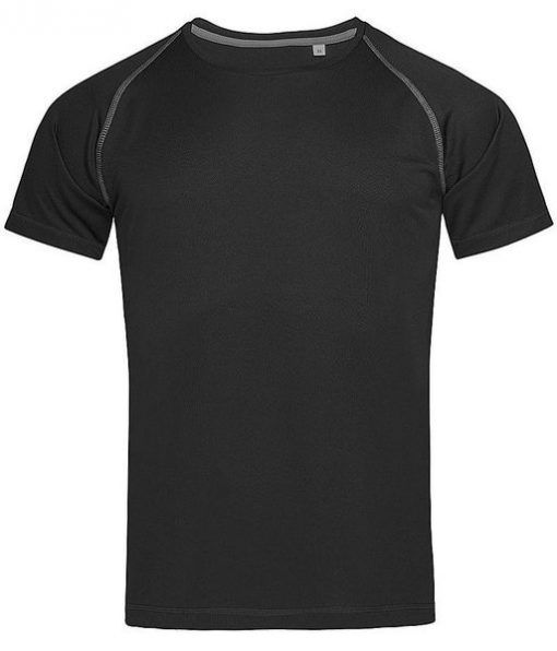 Koszulka T-shirt, Czarna, Sportowa, ACTIVE-DRY Poliester, Raglanowe Rękawy
