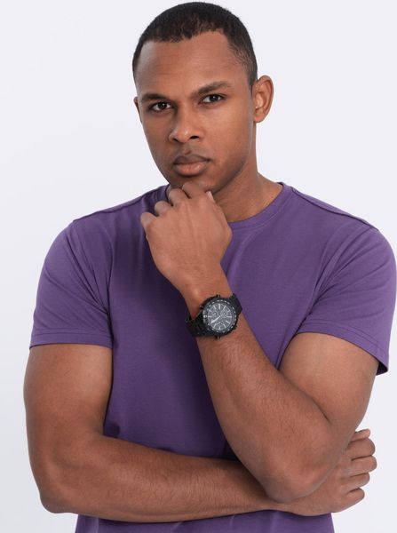 Ombre Męski klasyczny bawełniany T-shirt BASIC – fioletowy V13 OM-TSBS-0146 XL
