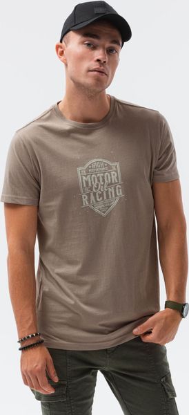 Ombre T-shirt męski z nadrukiem S1434 V-25C – brązowy S