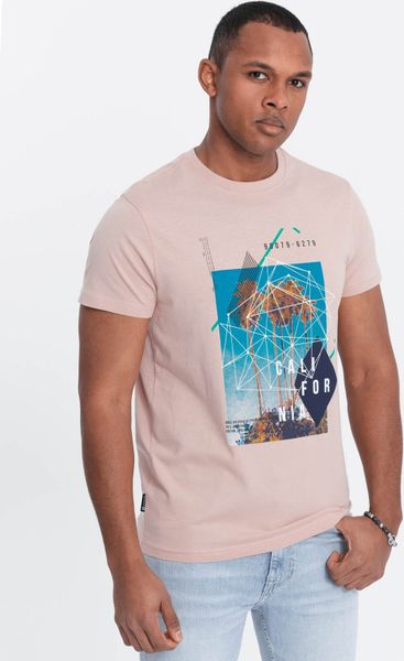 Ombre Męski t-shirt bawełniany z nadrukiem California – różowy V2 OM-TSPT-0128 XXL