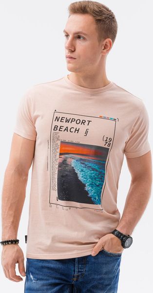 Ombre Męski t-shirt bawełniany z nadrukiem California - różowy V2 OM-TSPT-0128 XXL