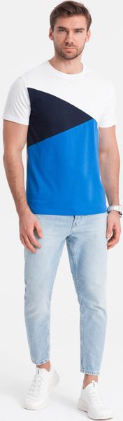 Ombre Trójkolorowy t-shirt męski bawełniany - biało-granatowy V3 OM-TSCT-0174 S
