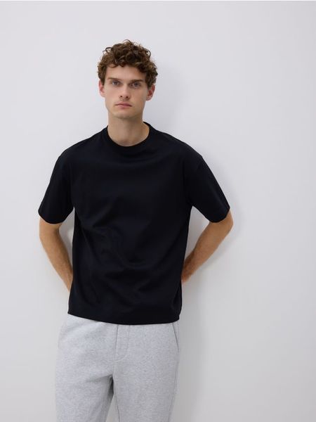 T-shirt boxy z merceryzowanej bawełny – czarny
