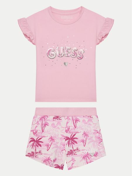 Guess Komplet t-shirt i spodenki K5GG05 K6YW4 Różowy Regular Fit