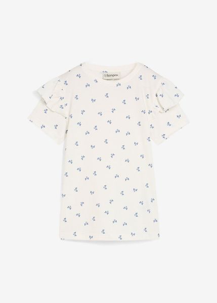 Uroczy T-shirt dziewczęcy z rękawkami z falbanką.