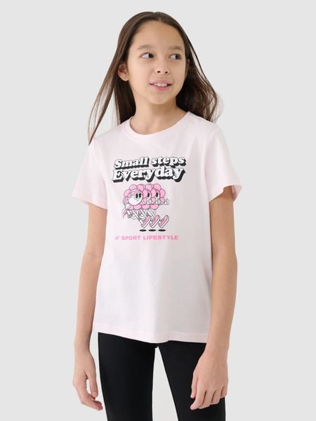 4F T-shirt regular z nadrukiem dziewczęcy – beżowy 152 (11-12 lat)