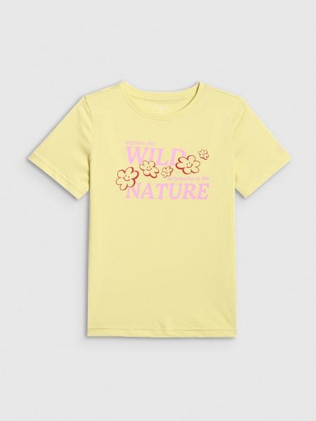 4F T-shirt regular z nadrukiem dziewczęcy – żółty 122 (6-7 lat)