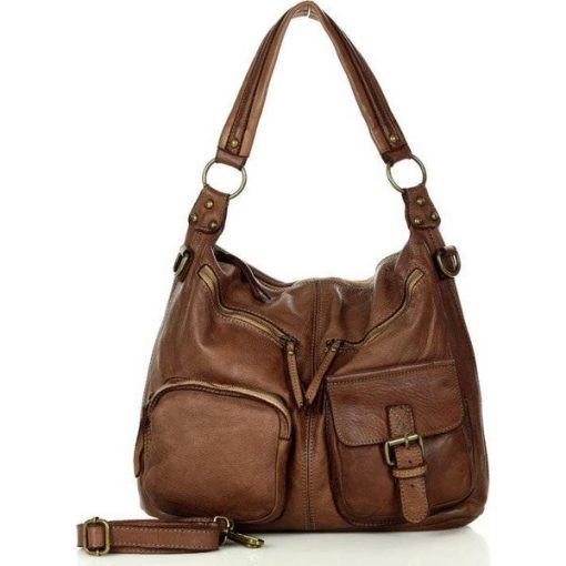 Skórzana torebka na ramię z praktycznymi kieszonkami. Wykonana z naturalnej skóry