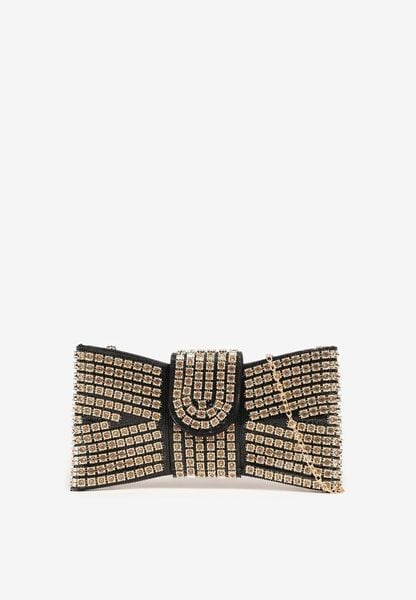 Czarna Torebka Kopertówka Kokarda Vices Ozdobiona Cyrkoniami Deranne