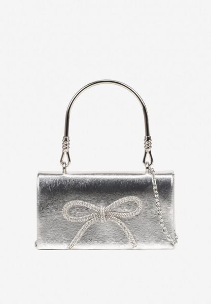 Srebrna Torebka Kopertówka z Metaliczną Ozdobą z Łańcuszkiem i Uchwytem Zarienna