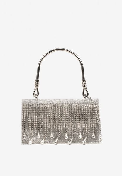 Srebrna Torebka Kopertówka Vices z Odpinanym Łańcuszkiem Zdobiona Cyrkoniami Fesollia