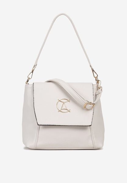 Jasnobeżowa Torebka na Ramię z Klapką i Ozdobnym Logo Wariessa