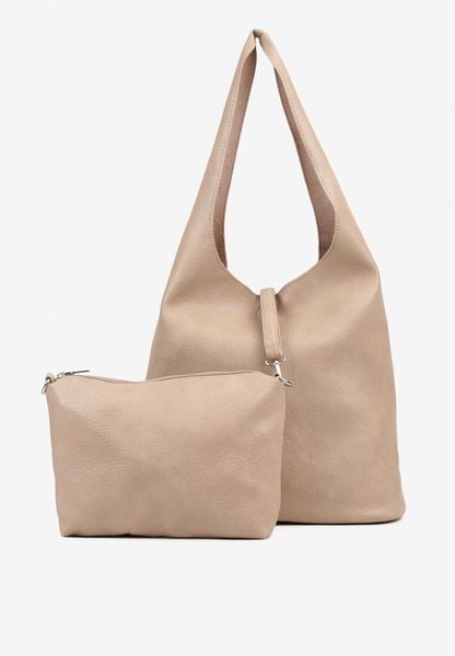 Beżowa Torebka z Dodatkową Saszetką i Regulowanym Paskiem na Ramię Teanisea