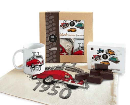 Paczka prezentowa dla fana motoryzacji VW T1 cukierki czekoladowe 125 gkubek ceramicznytorba bawełniana Paczkę można dodatkowo powiększyć o koszulkę lub bluzę (Kliknij aby zobaczyć wymiary i specyfikacje)Volkswagen Transporter T1Volkswagen T1, czyli Transporter pierwszej generacji, powstał w roku 1950, czyli dokładnie 70 lat temu. Ten poczciwy staruszek jest jednym z najbardziej podziwianych i spektakularnych rozwiązań jakie zaprezentowała marka […]