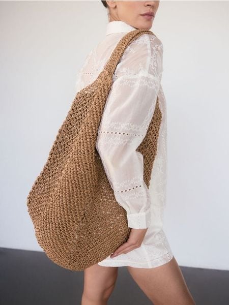 Torebka hobo o prostej formie, wykonana z plecionki.