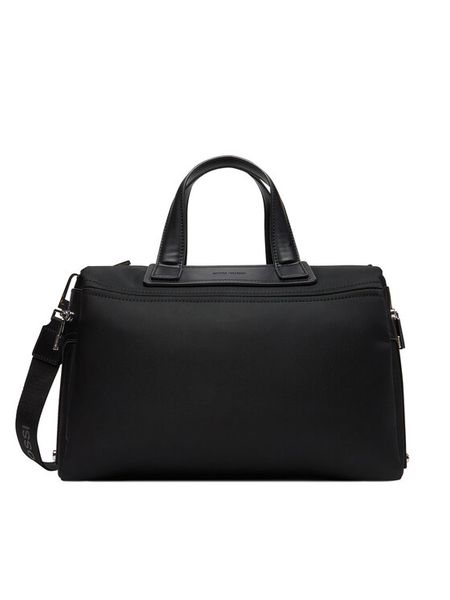 Czarna Torebka na Regulowanym Pasku z Metalicznymi Okuciami i Brelokiem Zalliera