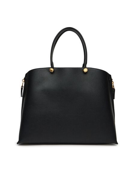 Czarna Torebka z Ekoskóry z Naszytą Kieszenią i Metalicznymi Okuciami Htilia